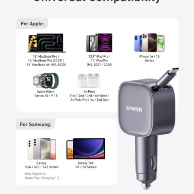 Anker Laptop Charger, 140W MAX USB C Charger, 4-Port GaN and Fast Charging Power Adapter, Intuitive Touch Controls, for MacBook, iPhone 17/16 Series, Samsung Galaxy, Pixel, and More (Non-Battery) + Anker 240W Cable