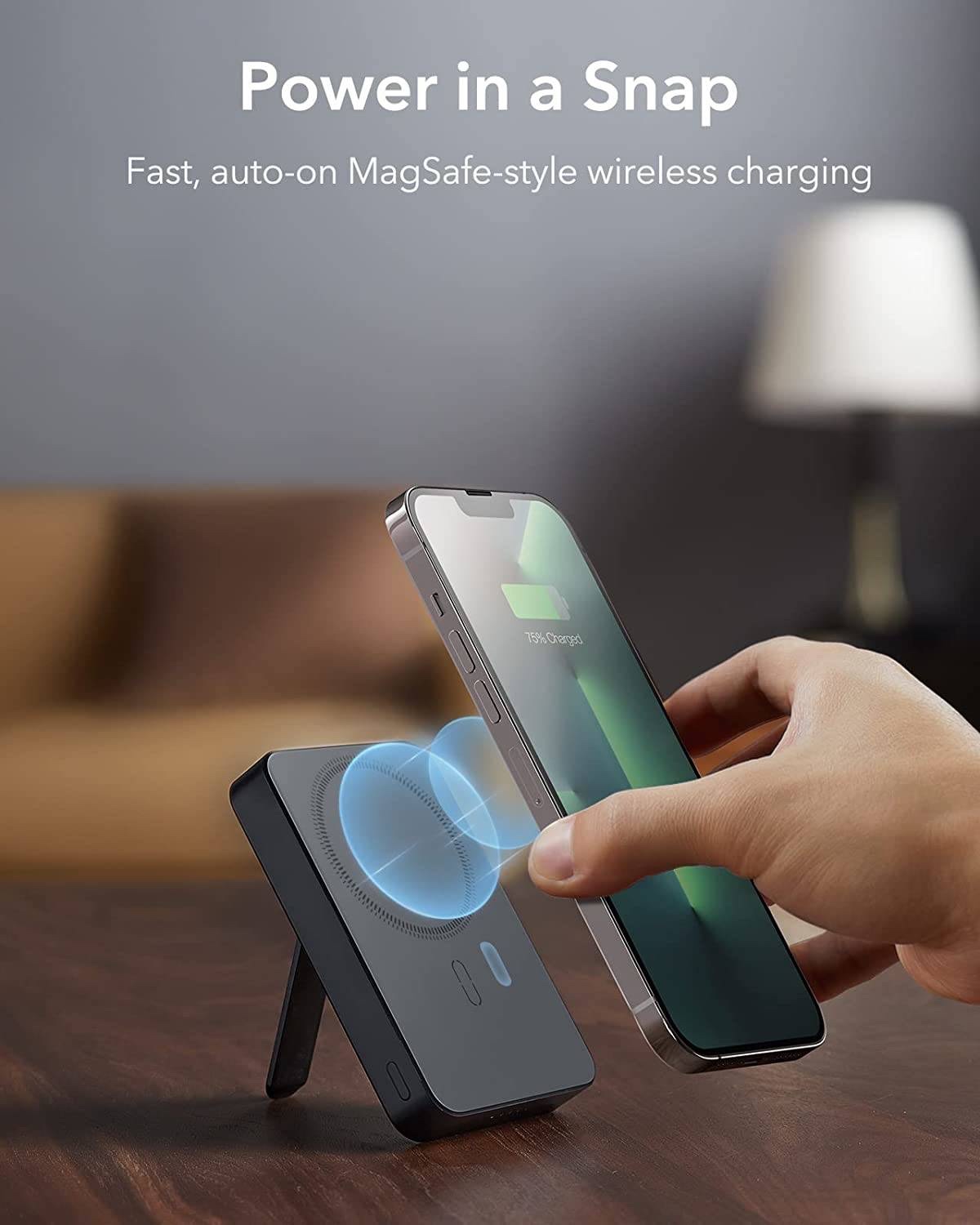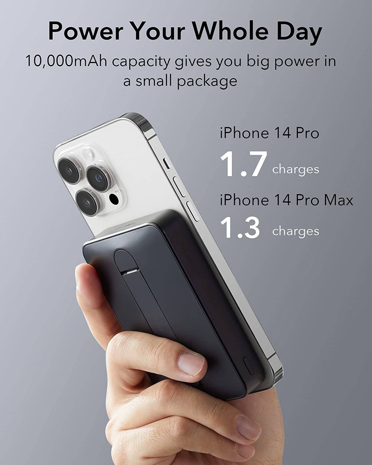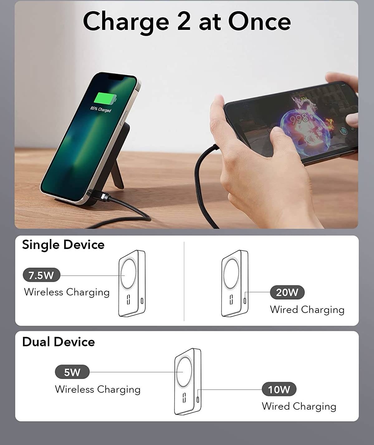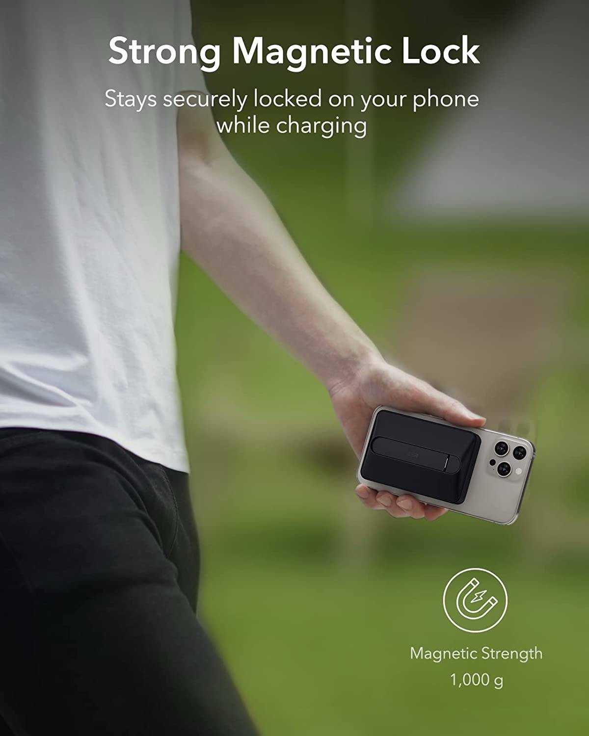 Specifications for ESR MagSafe Battery Pack (HaloLock), 10,000mAh MagSafe Power Bank with USB-C Cable, Kickstand Magnetic Wireless Power Bank for iPhone 14/13/12, MagSafe Portable Charger, Black | 2G5050201