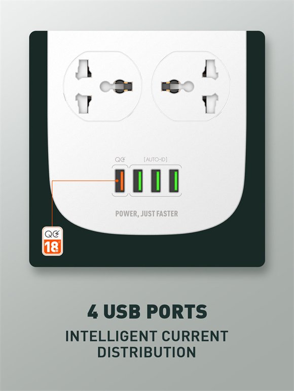 1 QC3.0 +3 AUTO-ID ports, 18W fast charging directly, no need to buy charger.