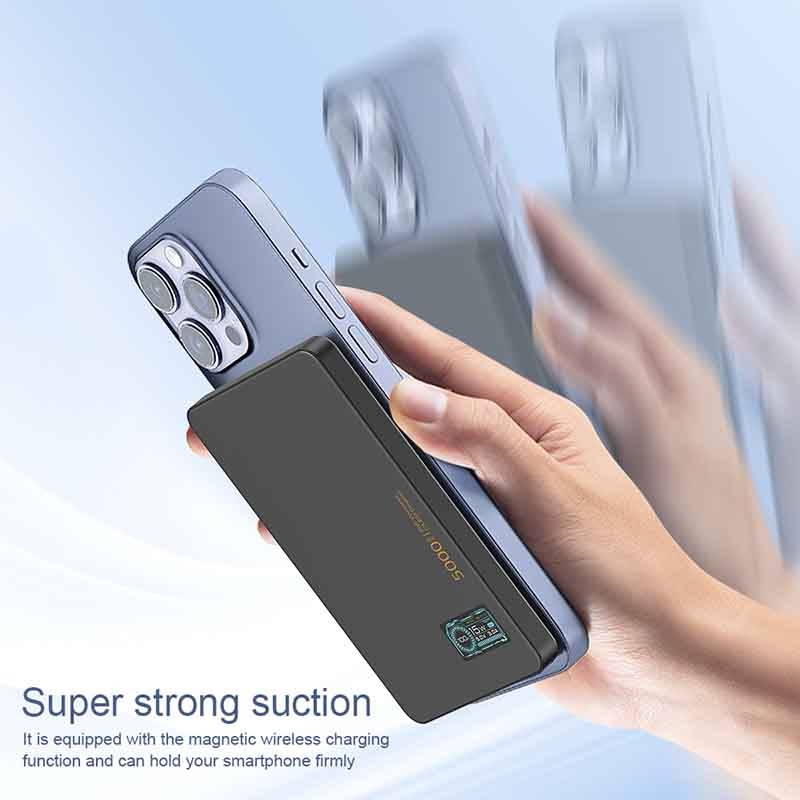 Designed with an innovative magnetic wireless charging system, this power bank securely holds your smartphone, ensuring efficient, uninterrupted charging.