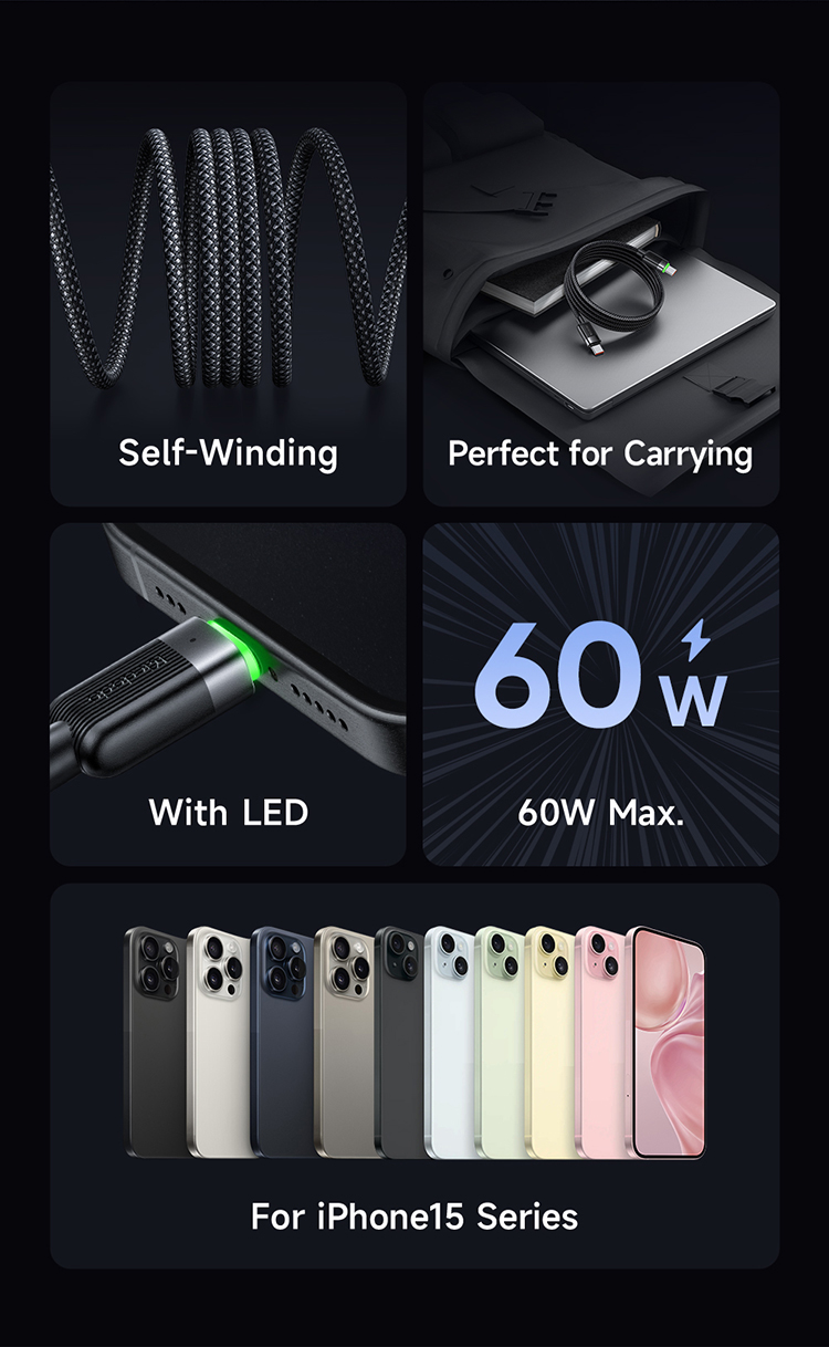 MCDODO CA2000 USB-C TO USB-C 60W MAGNETIC SELF-WINDING DATA CABLE 1.2M – BLACK