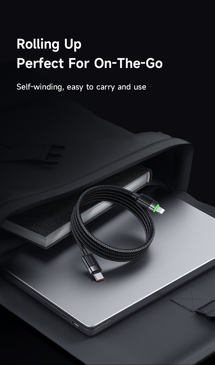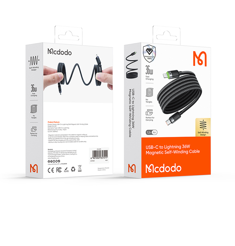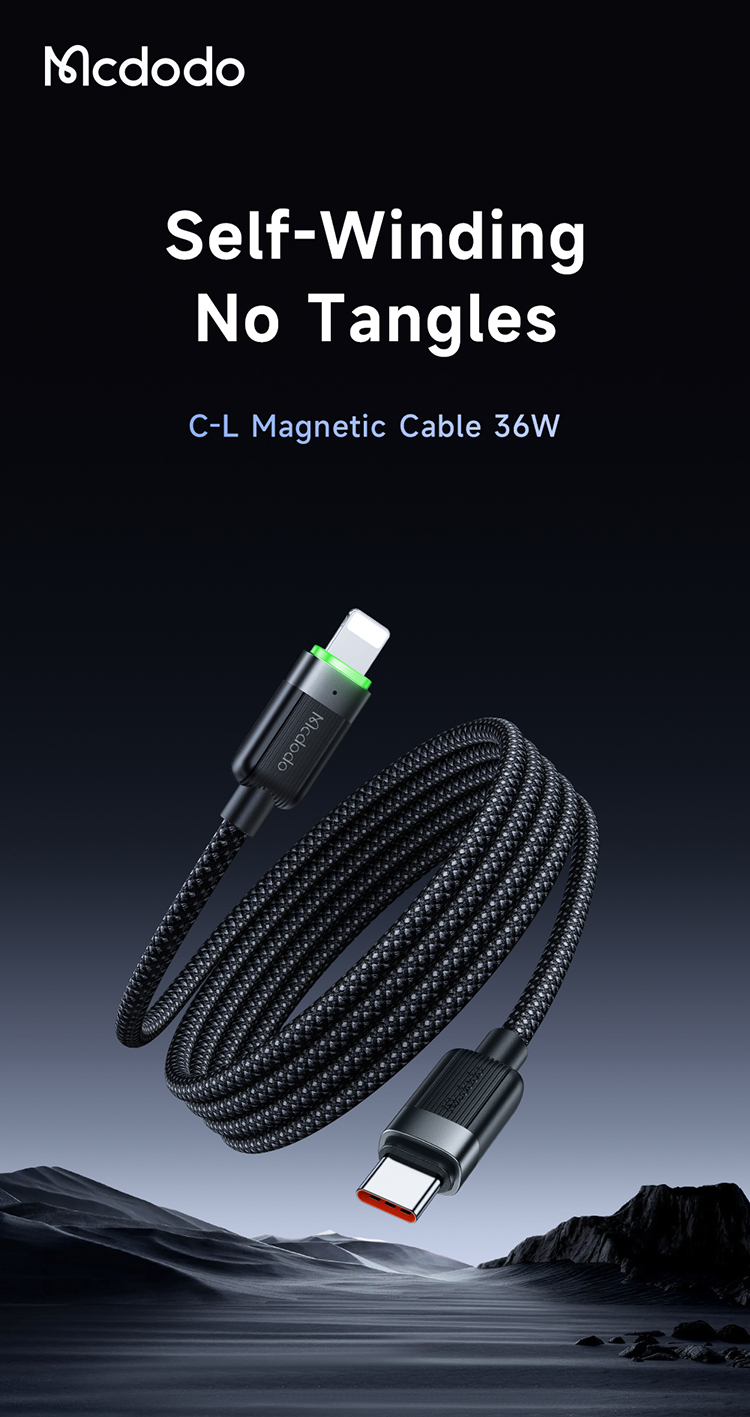 MCDODO CA2010 USB-C TO LIGHTNING 36W MAGNETIC SELF-WINDING DATA CABLE 1.2M – BLACK