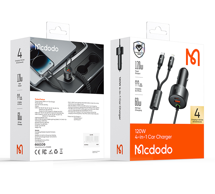 Be the first to review “MCDODO CC0370 120W 1C+1A CAR CHARGER WITH USB-C AND LIGHTING RETRACTABLE CABLES – BLACK” Cancel reply