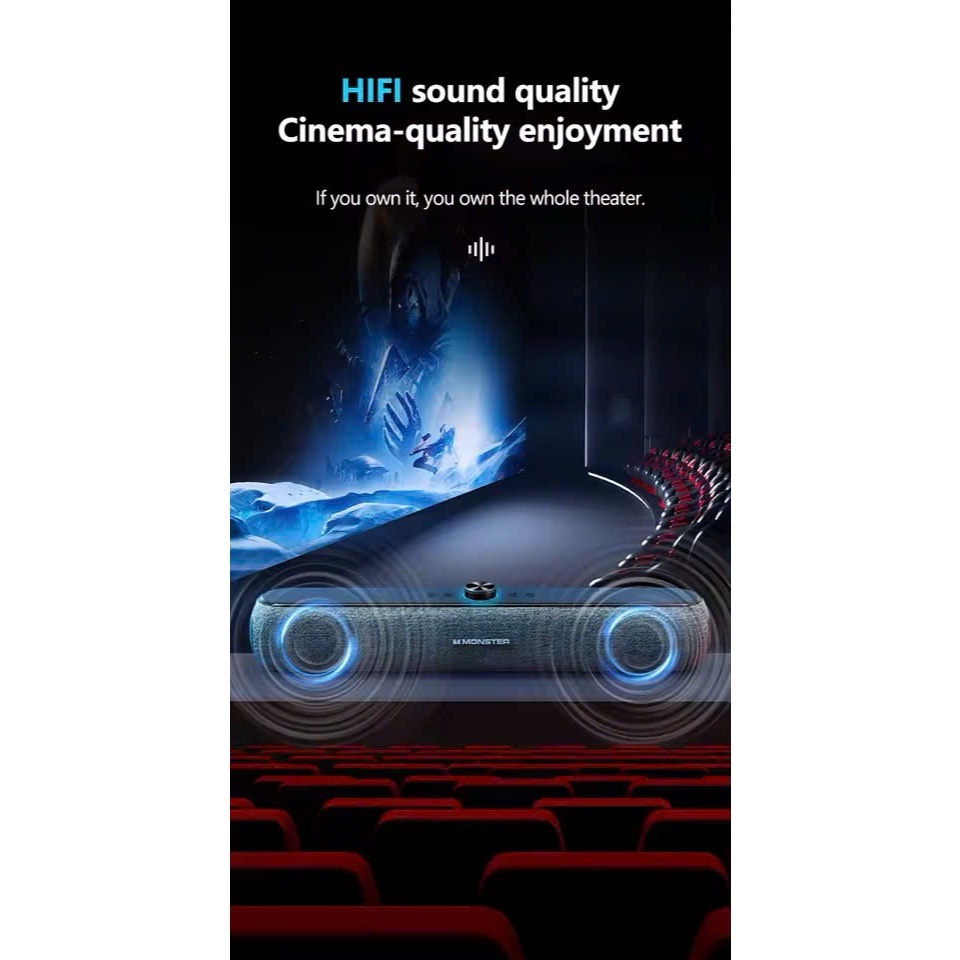 The Monster Airmars G11 Soundbar is designed to upgrade your home entertainment experience with powerful audio and deep bass performance. Built with high quality drivers and advanced sound tuning it delivers clear vocals enhanced bass and immersive sound for movies music and gaming. The soundbar features Bluetooth connectivity allowing you to wirelessly connect your smartphone TV laptop or tablet for seamless audio streaming.