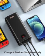 The power bank is compatible with 99.99% of fast charging protocols, including PD, QC, SCP, FCP, and AFC, supporting power output below 100W. This ensures broad compatibility with a wide range of devices.