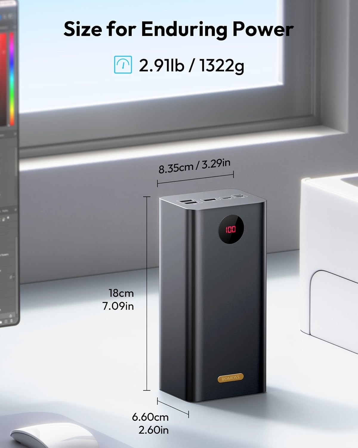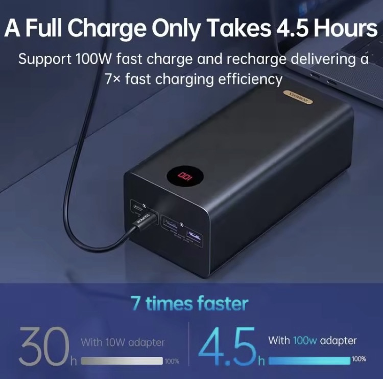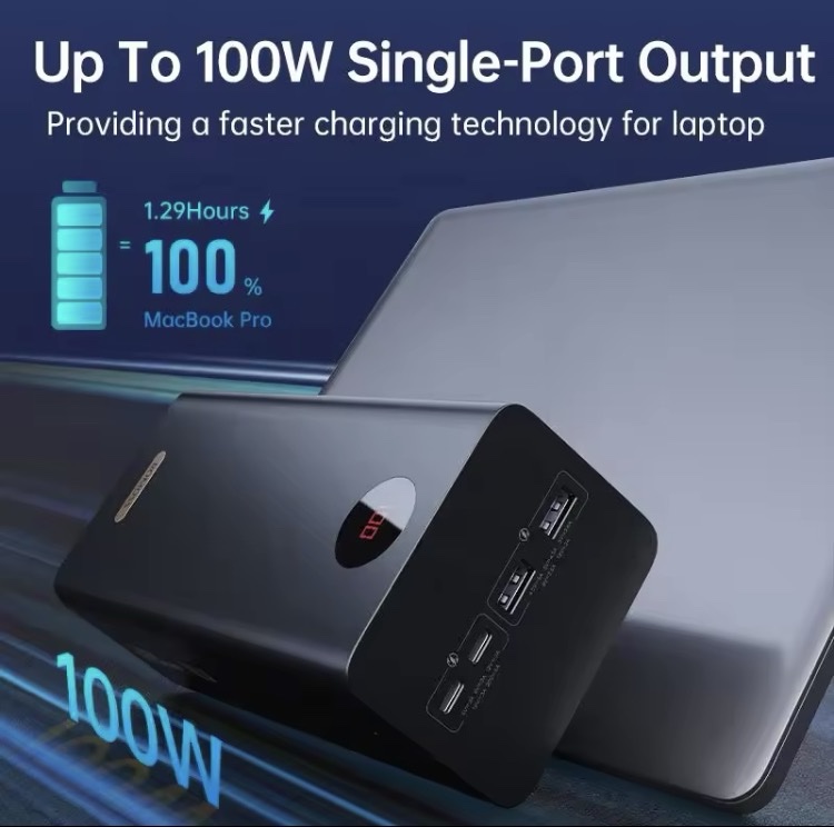 Achieve 100W single-port output for fast laptop charging, such as a MacBook Pro in 1.29 hours.