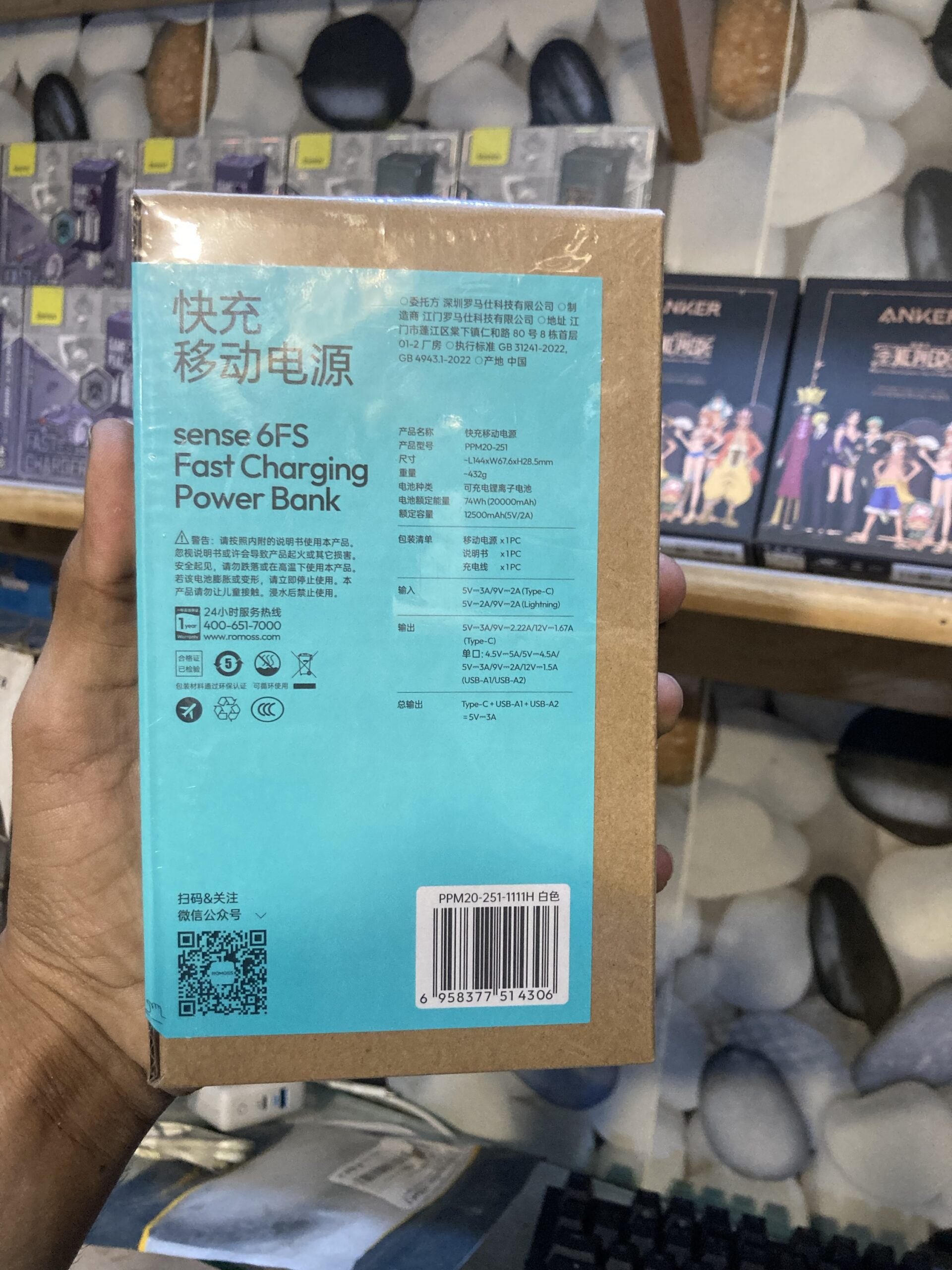 The Romoss Sense 6FS is a powerhouse of portable energy, designed for users who need reliable, high-capacity charging on the go. Wrapped in a durable, minimalist white casing, this 20,000mAh power bank ensures your devices stay powered through long trips, workdays, or outdoor adventures.
