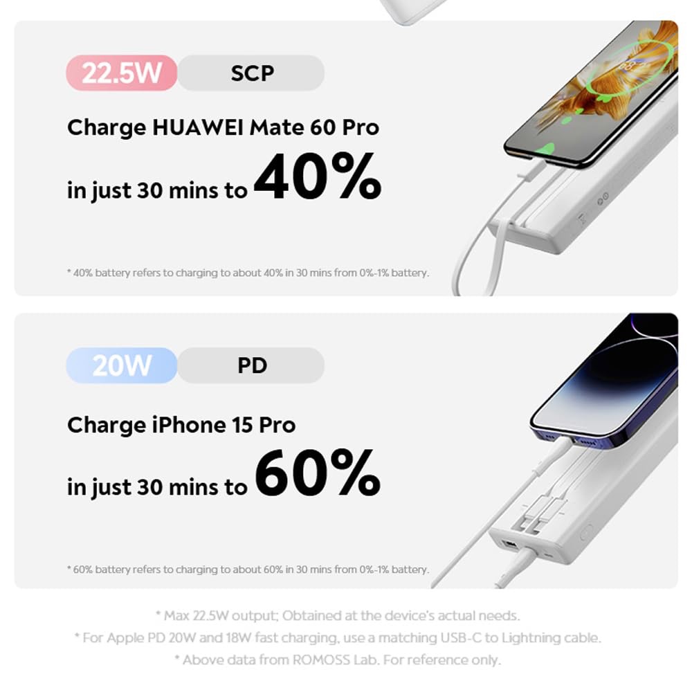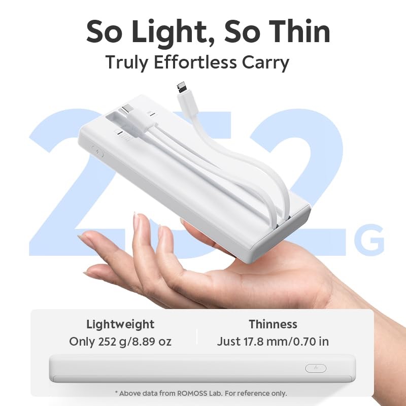 PRC10 built-in cables power bank is perfectly fits in your hand, bag and pocket, suitable for business trip or other outdoor activities needs. It is a suitable portable charger on the go.