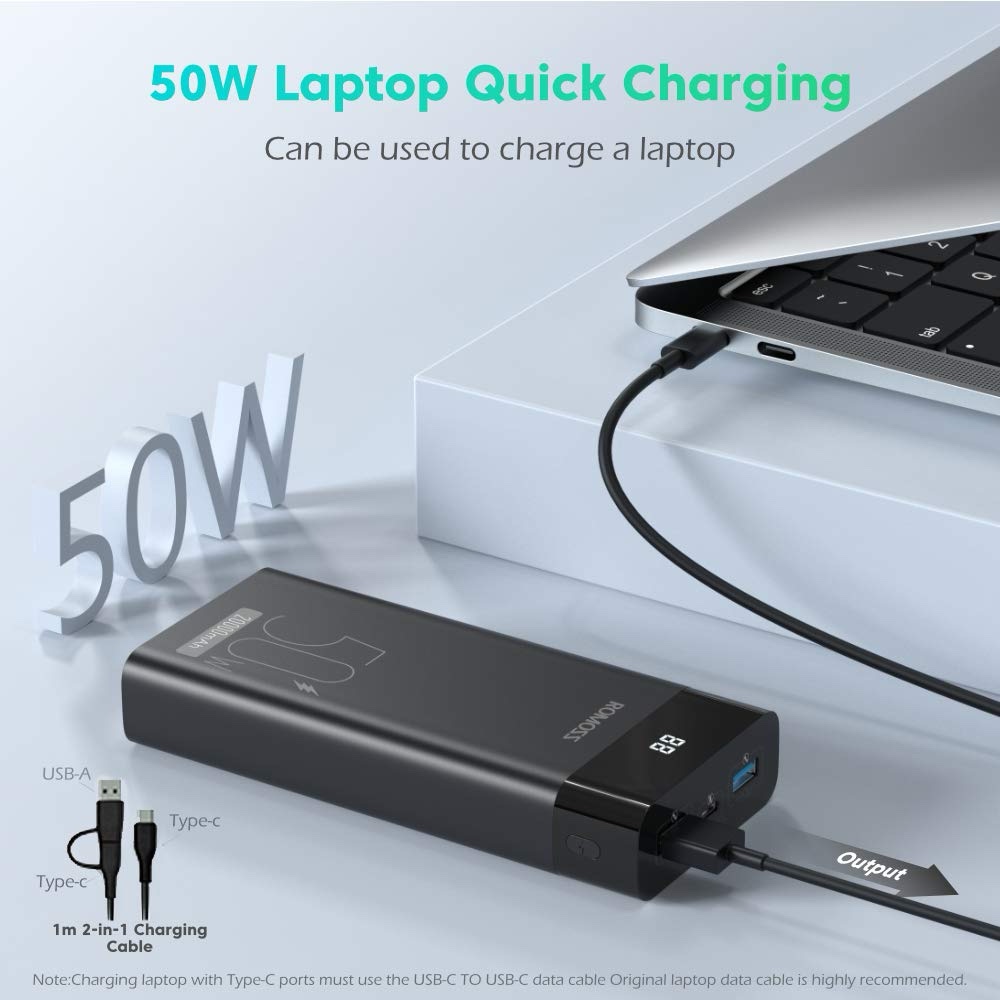 With this 45 W type C power bank, on the go or in everyday life, you can now charge your laptop thanks to your ROMOSS power bank.