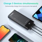 Equipped with 2 USB-A outputs (max. 18 W) and 1 type-c output connection (max. 45 W), the portable charger can charge 3 devices at the same time. Easily share this power bank with your family and friends.