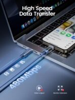 • DURABLE AND STURDBILITY: Type c to Type c usb c display cable uses braided nylon material and has special transparent and aluminum shell to become oxidation resistant, You can see directly into the internals and the clear and bright display. Become sturdy and strong for longer service life.The connector has a thickened neck to add extra durability to reduce damage caused by bending and twisting which can withstand at least 35000 times bending test