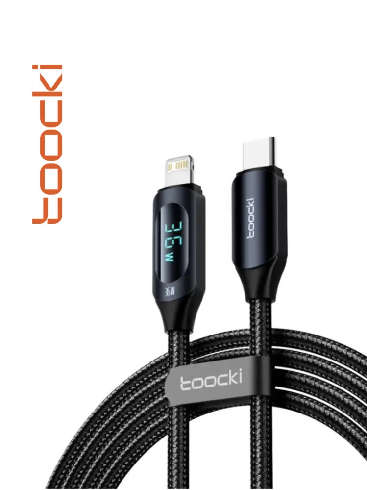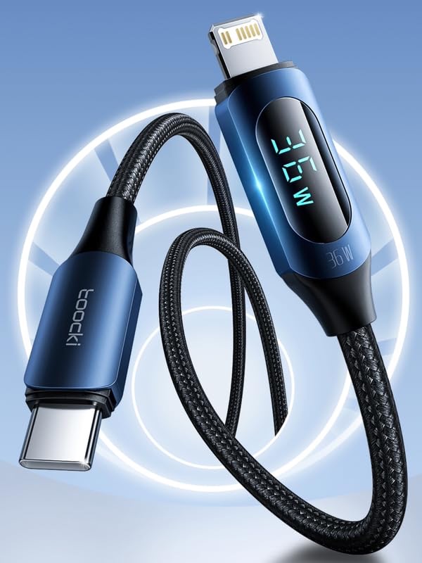toocki USB C to Lightning Cable PD 36W Super-Fast Charging Cable with Digital Display for iPhone 14 13 12 11 Pro Max Xr Xs 8 and more | 480Mbps Data Transfer | Nylon Braided+TPE (3.3FT) (Black, 1)