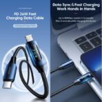 This cable supports Power Delivery (PD) up to 36W, enabling Super-Fast Charging to significantly reduce the time needed to power up your iPhone or iPad (when paired with a compatible PD charger). A standout feature is the integrated Digital Display, which provides real-time charging wattage information. This allows you to visually confirm your device is charging at its maximum possible speed.