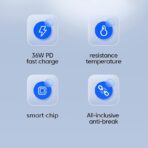 PD 36W Fast Charging: Supports Power Delivery (PD) for super-fast charging of compatible iPhone and Apple devices.